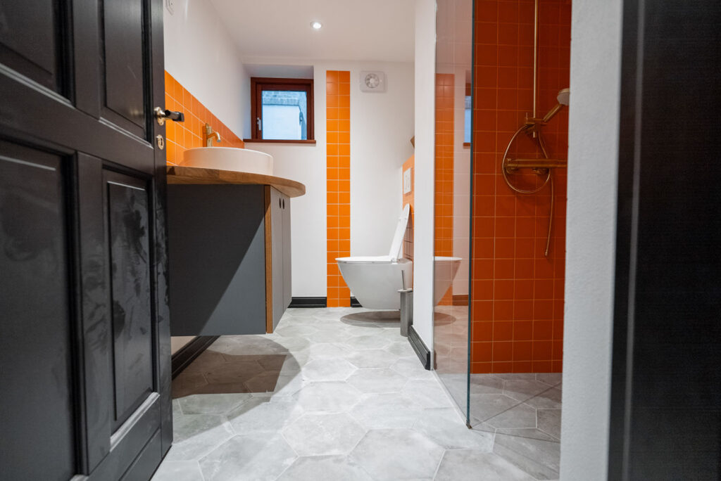 Et 70’er badeværelse har ofte sin helt egen charme, men også sine udfordringer. Mange af disse badeværelser er præget af brune, orange eller grønne fliser, lavt til loftet og måske endda indbyggede skabe, der sluger plads. Når vi står for renovering af et 70’er badeværelse, fokuserer vi på at bevare det gode ved rummet, men samtidig opdatere det til nutidens standarder for funktionalitet og vådrumssikring.